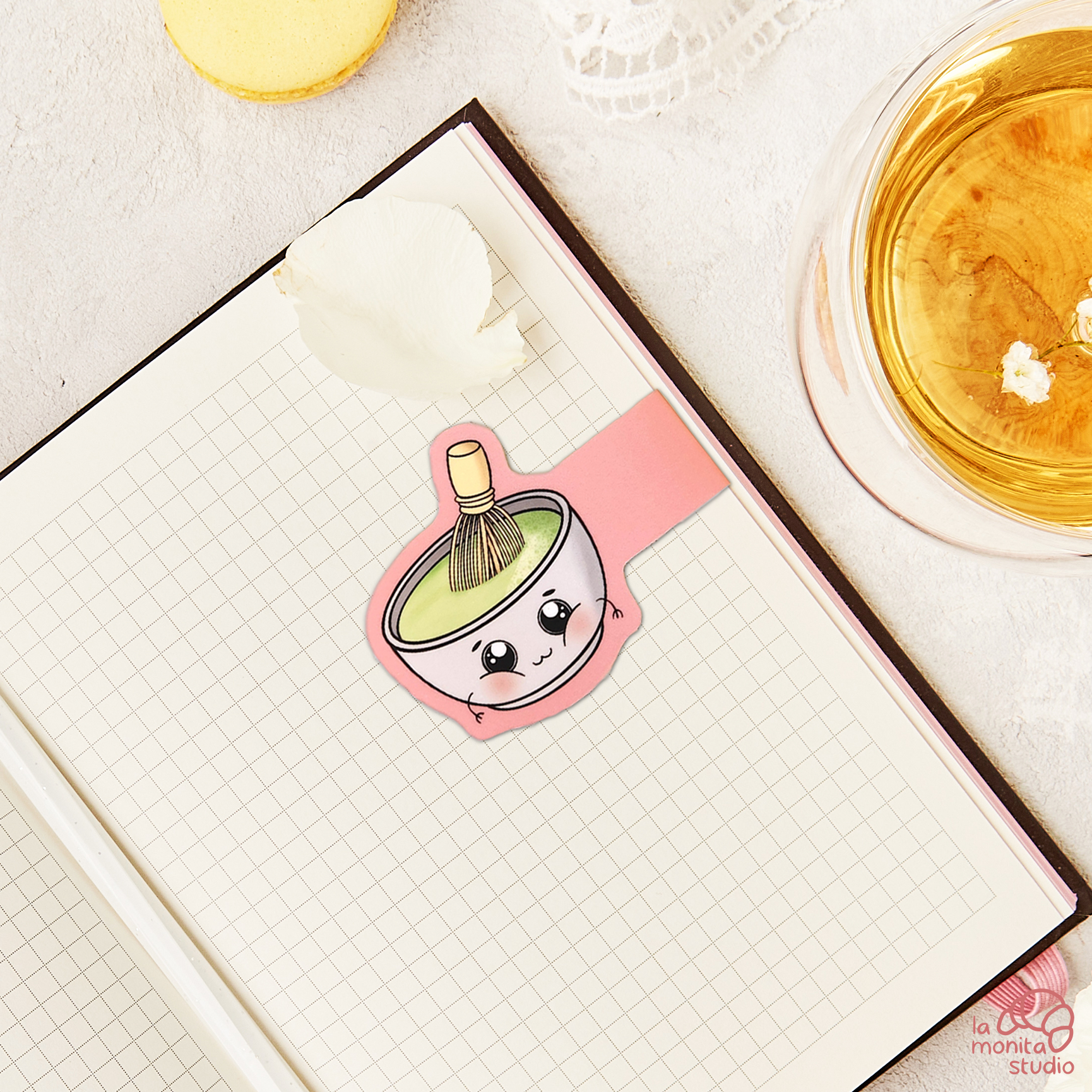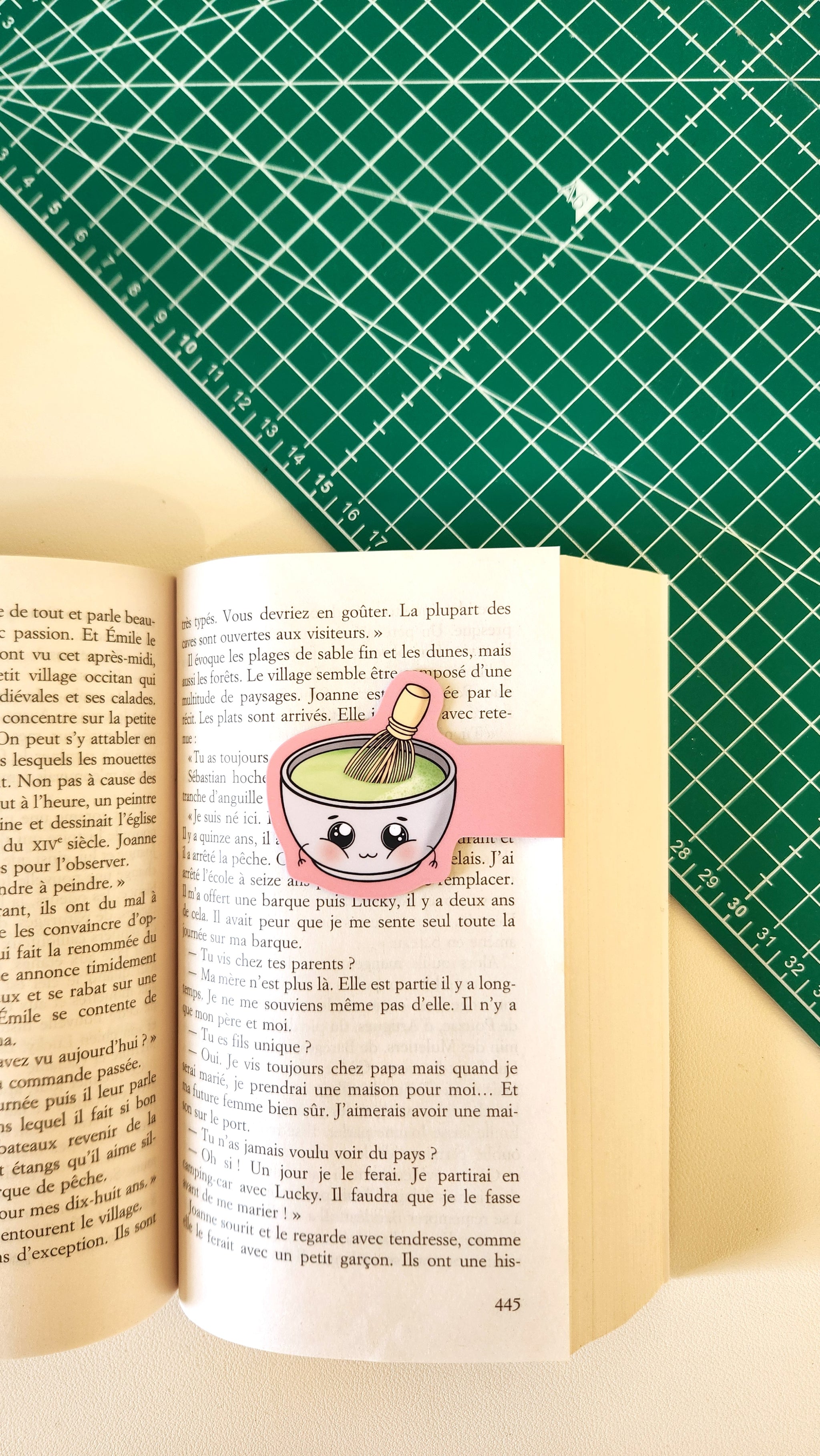 Ce marque‑page magnétique capture la douceur d’un bol de matcha